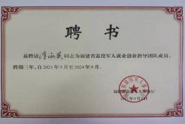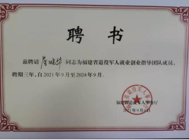 近日,经我校推荐,龙岩市退役军人事务局和福建省退役军人事务厅层层选拔,我校林福、钟亮梅、涂海英、张赠富、张松梅、赖松兆、詹晓华等7位教师被省退役军人事务厅聘请为福建省退役军人就业创业指导团队成员。