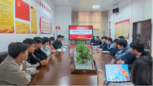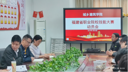 11月16日,城乡建筑学院组织召开福建省职业院校技能大赛动员会,党委书记李志文、院长林茂才、副院长罗有才、黄晓丽出席动员会,省赛全体指导老师和备赛选手参会。