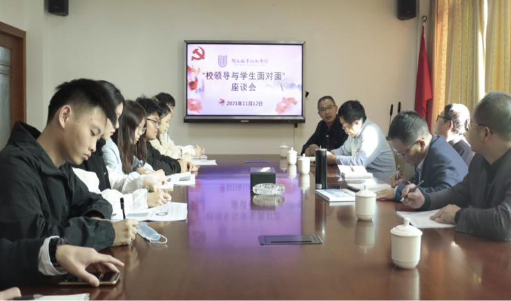 为及时掌握我校学生思想动态,有针对性地加强对大学生的思想引导,11月12日下午,我校领导与学生会代表在办公楼五楼会议室开展了面对面座谈,校长梁俊平、副校长吴新业、刘路永、卢兆梅、校团委书记林小勇、副书记卢素素及9名学生会代表参加本次会议。
