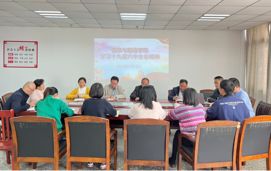 为深入学习党的十九届六中全会精神,推动十九届六中全会精神入脑、入心、入行,11月16日,信息与制造学院党委在实训楼602会议室组织开展党的十九届六中全会精神专题学习会。该院全体党委委员,各支部书记,全体辅导员参加学习。