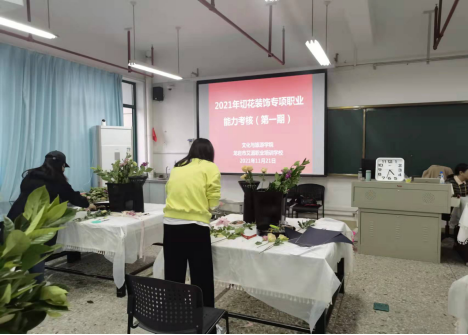 11月21日,切花装饰专项职业能力鉴定考试在我校顺利进行。文化与旅游学院120余名学生参加了考试,龙岩市人力资源和社会保障局、龙岩市工人考核和技能鉴定管理中心领导到场指导职业技能鉴定工作。