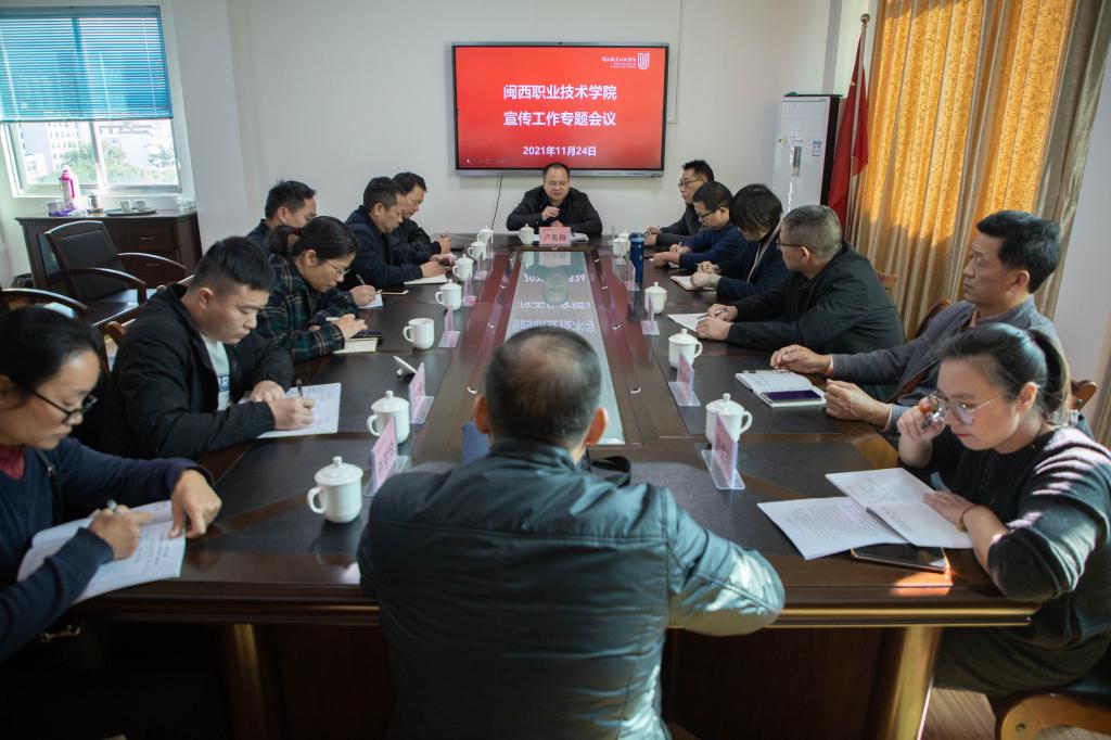 2021年11月24日上午,我校在第三会议室召开学校宣传工作专题会。卢兆梅副校长,党政办、宣传部(统战部)、学工处、团委相关责任人,各二级学院相关负责人参加会议。