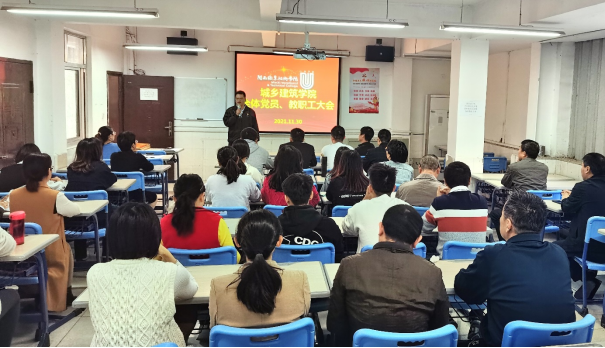 林茂才院长传达了学校召开党建工作品牌创建推进会议精神,介绍了城乡建筑学院《365党建引领红专结合推动高质量发展》党建工作品牌和《1314德技并修培育新时代阳光工匠》学生工作品牌的创建目标、措施和要求,提出党建引领、红专结合,通过品牌创建,落实立德树人根本任务,推动实现兴校强校。