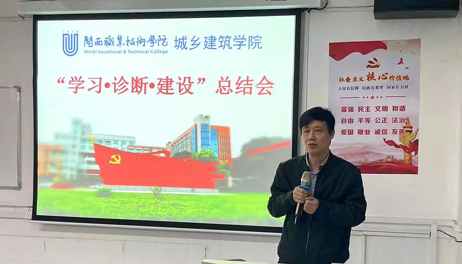 卢伟耀书记肯定了城乡建筑学院通过学习、诊断、建设取得的阶段性成效,强调新时代新征程更要让党旗高高飘扬,要求在高职发展迎来的又一个春天和市委市政府重视支持学校建设发展的良好机会,不忘初心、牢记使命,对标“双高”建设,在推进智慧建造专业群高质量发展上下功夫,为党育人、为国育才,坚持以学生为中心,服务学生成长成才,培养一技在手的新时代阳光工匠。