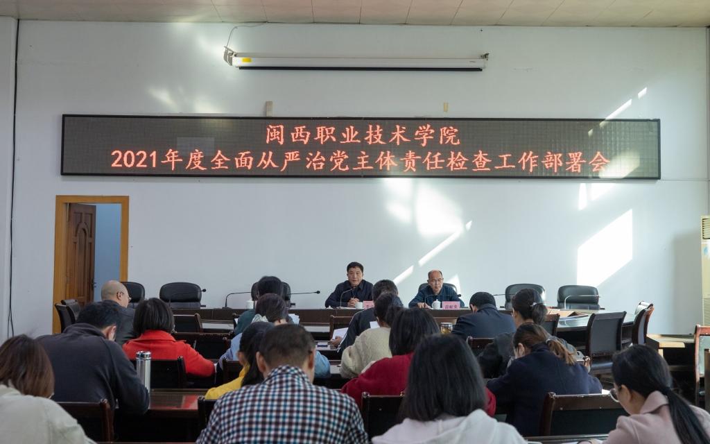 12月9日下午,学校在办公楼第一会议室召开2021年度全面从严治党主体责任检查工作部署会。学校校纪委全体委员、各所属党委(党总支)副书记、检查组相关工作人员参加了会议。会议由校党委副书记李贞鑫主持。