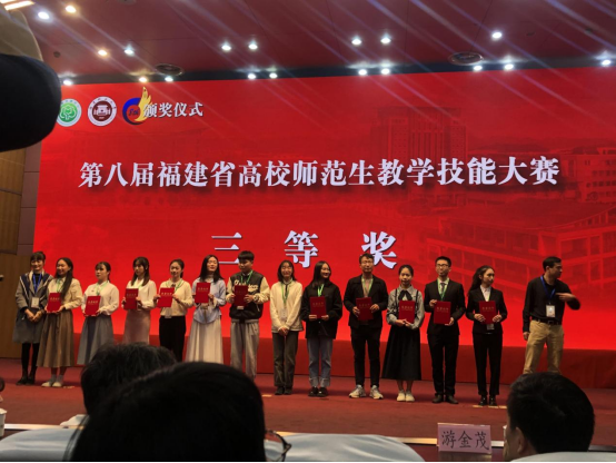 2021年12月12日,第八届福建省高校师范生教学技能大赛(学前教育)在福州举行,我校教育与艺术学院教师黄翠宝、陈丽华、张丽芳、赵真指导的两名学生胡灵菲、任晓分别获得一等奖、三等奖。