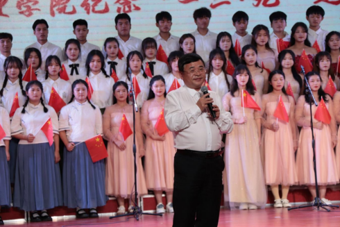 在所有班级表演完之后,党委书记卢德湖教授上台致辞,他强调了“感谢、感动和感恩”三个关键词。特别强调,广大青年学生要铭记党恩,要充分认识到没有共产党就没有新中国,没有共产党,中华民族就不可能从站起来到富起来到强起来,没有共产党的领导,就没有中华民族伟大复兴!作为青年学生,对党要常怀感恩之心,希望大家通过本次晚会,把感恩之心化为强大动力,把“诚信财院”和“红色财院”建设好、发展好,为“双高校”、财经商贸学院“双高专业群”建设、省级文明校园和第七届龙岩市文明城市的创建贡献自己的一份力量!