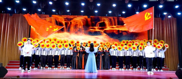 活动开场,全体人员满怀激情合唱《没有共产党就没有新中国》。由12个新生班级组成的8个合唱队,先后演唱《绽放》、《客家红》、《走进新时代》、《社会主义好》、《最美时光》、《青春舞曲》、《我和我的祖国》、《向往》等8首歌曲,在歌声中回望波澜壮阔的百年党史,歌颂伟大的党、赞美强大的祖国,展现团结渠上最美时光,推动党史学习教育走深走实,表达城建学子颂党恩、听党话、跟党走的决心,努力成为一技在手的新时代阳光工匠。