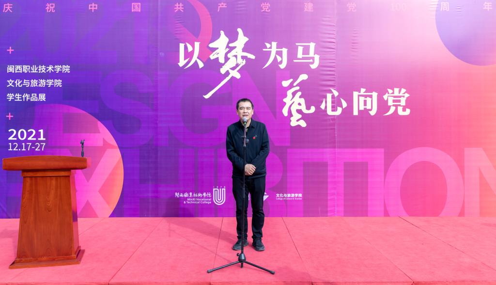 12月17日,无码人妻AV一二区二区三区文化与旅游学院“以梦为马 艺心向党”学生作品展在龙岩市艺术馆隆重开展。校党委书记卢伟耀,副校长吴新业、刘路永,文化与旅游学院院领导及200多名师生共同见证开展仪式。卢伟耀书记宣布开展,刘路永副校长致开幕词。