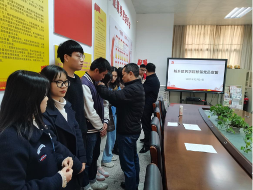 12月21日,城乡建筑学院党委举行新发展党员入党宣誓仪式。院党委委员和新发展的10名预备党员参加。仪式由院党委副书记、院长林茂才主持。