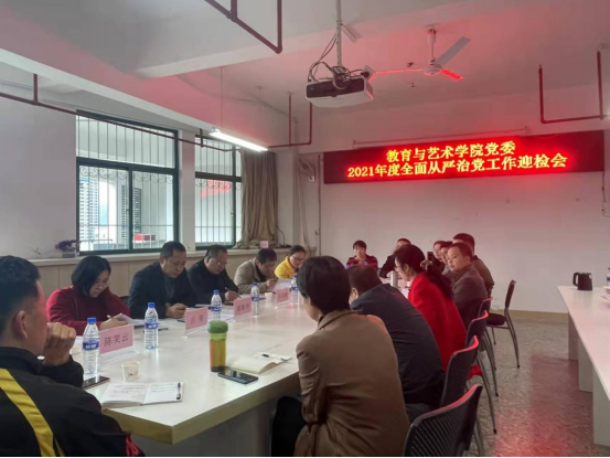 12月22日,根据校党委统一部署,校党委委员、副校长卢兆梅率全面从严治党第六检查组深入教育与艺术学院开展2021年度全面从严治党主体责任落实情况检查。