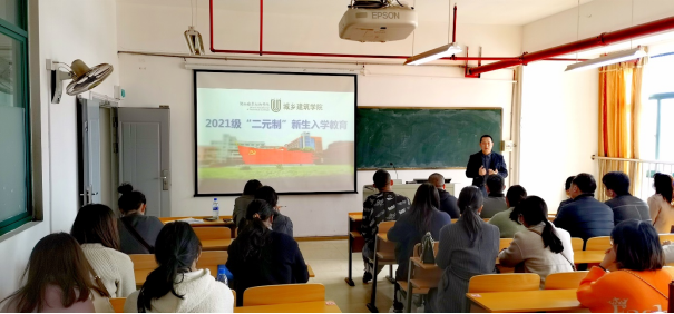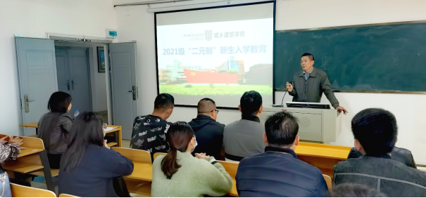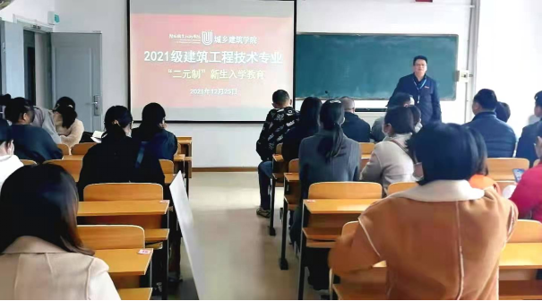 12月25日上午,城乡建筑学院2021级“二元制”新生入学教育在教学综合大楼704多媒体教室举行。院班子成员、专业主任、专业教师、班主任及建筑工程技术专业“二元制”新生参加。