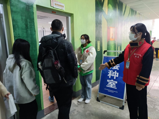 在疫苗接种现场,科学设置了排队等候区、咨询区、登记区、接种区、留观区和医护应急救援室,保证接种流程全过程单向不反复,每位师生接种前须签署《新型冠状病毒疫苗加强免疫接种知情同意书》。同时,医务工作人员详细询问了所有受种人员近期健康状况,进行接种禁忌核查和信息登记,并充分告知受种者接种疫苗品种、作用、接种禁忌、不良反应以及接种后留观注意事项,确保每一位师生安全、规范接种。学生志愿者们有条不紊地协调现场秩序,确保此次疫苗接种工作高效有序开展。