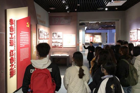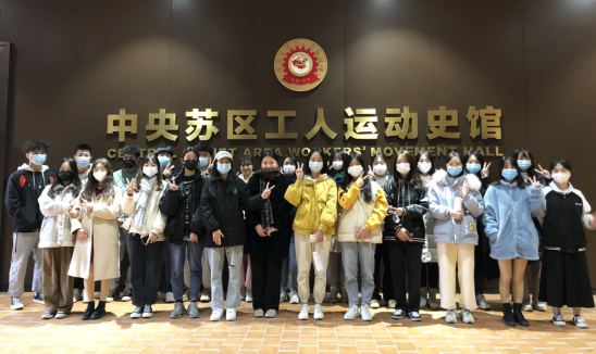 展馆包括“赤色工运 红色之源”“党的领导 建强组织”“劳动立法 工运创举”“当家作主 政权柱石”“发展经济 突破封锁” “参军参战 保卫苏区”等六个部分。通过现场讲解,师生们详细了解中央苏区工人运动在探索中一路前行的历史轨迹,深刻感悟到苏区工人阶级与中国共产党血肉相连、休戚与共的血脉深情。大家凝神聆听,驻足细览,从珍贵史料中学习领会中央苏区工运历史,为设计比赛做好准备。