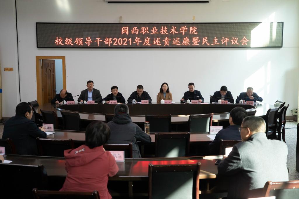 1月4日下午,我校召开学校领导班子成员2021年度述责述廉民主评议会议。校党委书记卢伟耀同志主持会议并作了讲话。龙岩市纪委三室负责人郐芳同志,校领导班子成员、各部门、单位负责人、校纪委委员等参加了会议。