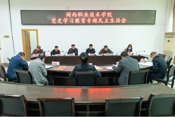 1月18日,我校召开党史学习教育专题民主生活会。市委教育工委委员,市教育局党组成员、副局长温寿春;党史学习教育市委第七巡回指导组副组长、市统计局三级调研员郑庆辉;党史学习教育市委第七巡回指导组成员、驻市教育局纪检监察组二级主任科员黄姝婧;龙岩市产教融合联盟秘书处干部王定呼等4位同志莅会指导、督导。校党委书记卢伟耀主持会议,校长梁俊平及其他班子成员参加会议。