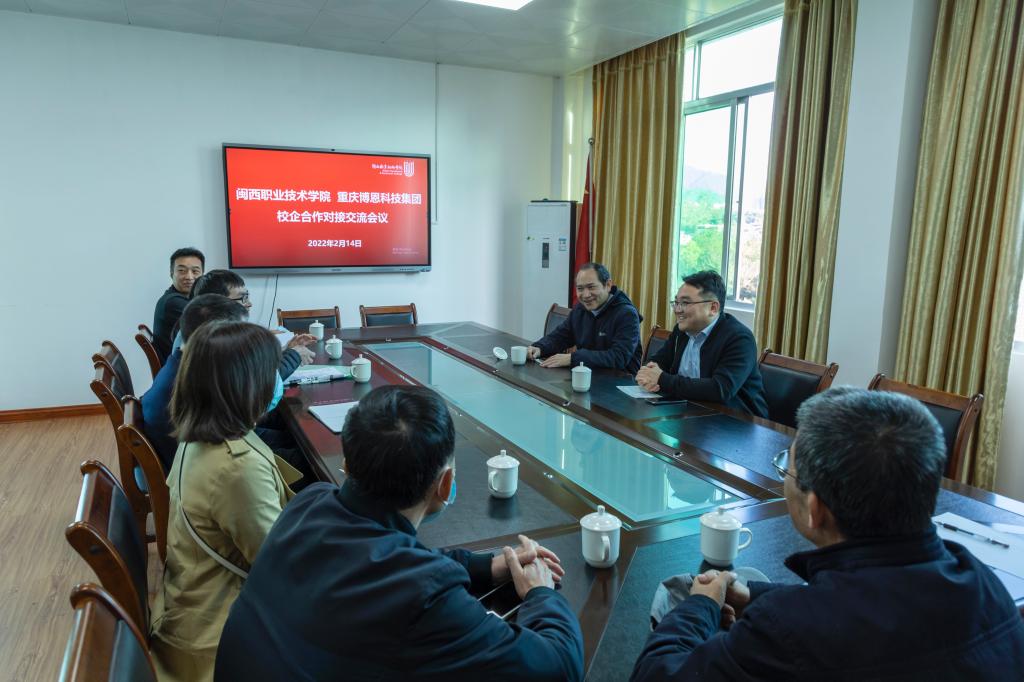 2月14日下午,博恩(中国)控股集团有限公司总经理张耀元一行莅临我校考察交流,校长梁俊平陪同并主持召开座谈会。教务处、后勤管理处、对外交流合作处和文化与旅游学院相关单位负责人及教师陪同调研。