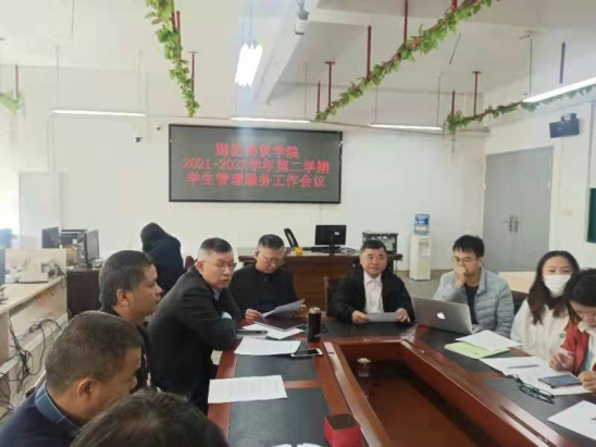 2月28日上午,财经商贸学院在实训楼808会议室召开了学生管理服务工作会议。院学生工作领导小组成员、班主任和训导师代表参加会议,院两委主要干部列席会议。