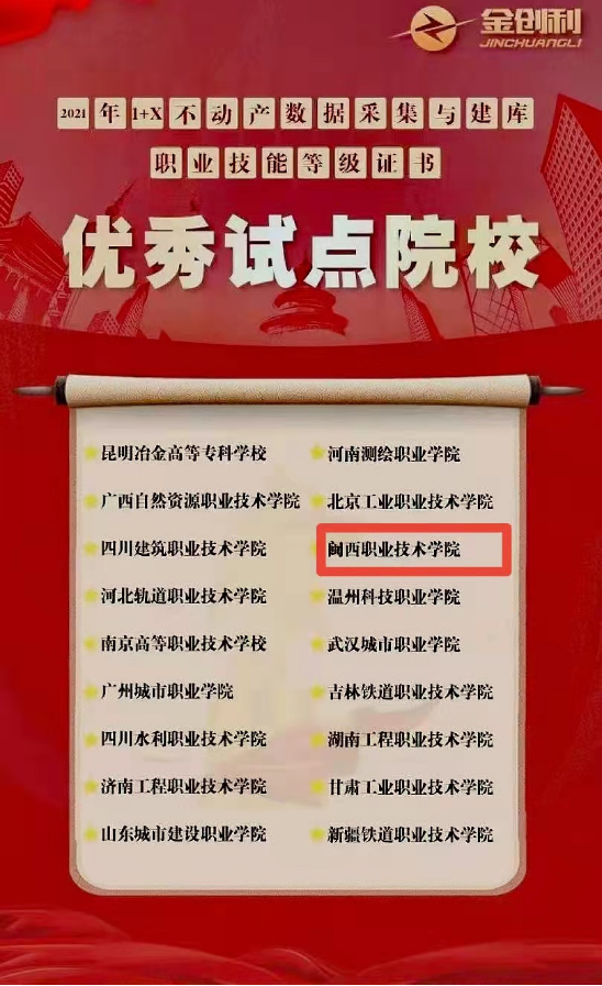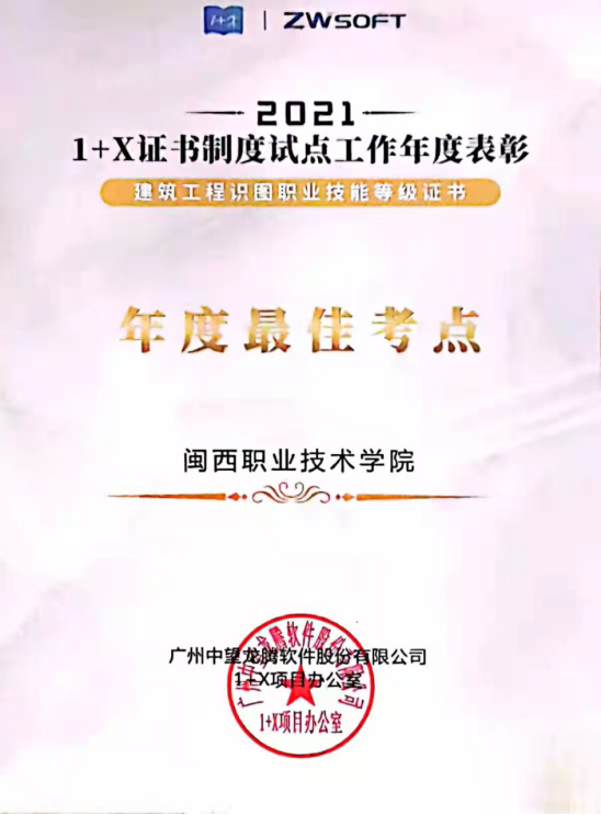 近日,“1+X证书试点工作”年度表彰结果公布,我校建筑工程识图职业技能等级证书考点获评“年度最佳考点”、造价数字化技术应用职业技能等级证书考点获评“2021年度考核标杆院校”、不动产数据采集与建库职业技能等级证书考点获评“优秀试点院校”,城乡建筑学院张李英老师荣获“优秀培训教师奖”、邓于莘老师被评为“先进工作者”、陈国栋老师获“优秀指导老师”、李志文老师获“优秀考务组织奖”。