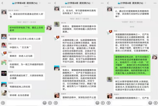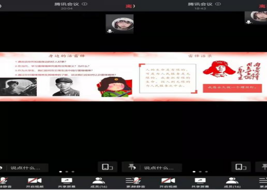 3月4日,教育与艺术学院组织各班级团支部分别开展“学习雷锋好榜样,争做文明使者”云会议。会议结合雷锋同志的至理名言,讲述了雷锋的生平事迹;组织学生观看《习近平总书记诠释新时代雷锋精神》视频,同学们围绕“雷锋精神的当代解读”进行了热烈的小组讨论。