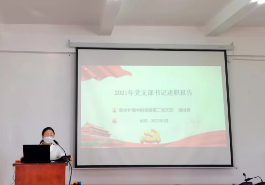 3月16日,医护学院召开2021年度支部书记抓党建述职评议会,医护学院党委委员、支部委员、党员代表听取3位支部书记现场述职,并对她们的工作进行评议。