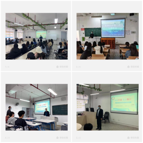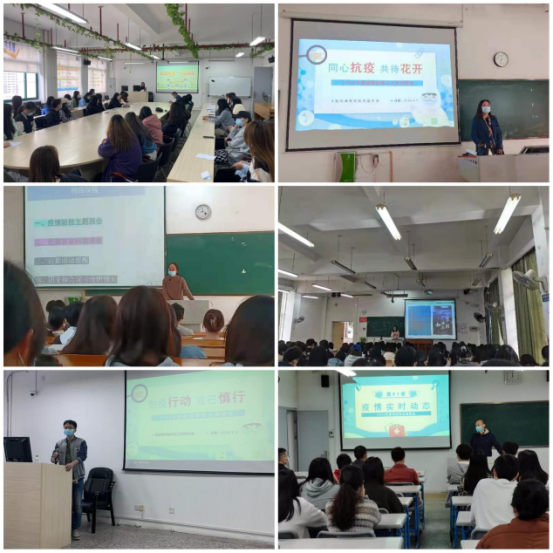 针对当前疫情防控形势和举措,为了把上级和学校的疫情防控措施讲清讲透,确保入脑入心,引导广大学生与中央、省、市和学校党委的决策部署同频共振,上下同心,共同打赢第四波全国大范围疫情防控保卫战。财经商贸学院领导班子高度重视,认真抓好主题班会的组织工作,利用4月2~3日二天周末时间,全覆盖组织召开了十场次的第三次疫情防控主题班会。主题班会由辅导员主持和主讲,所有班级和在校生全部参加,学院领导分别深入到各班级,带头领学,参与讨论。2021级全体班主任参加了相应班级的主题班会并进行宣讲。