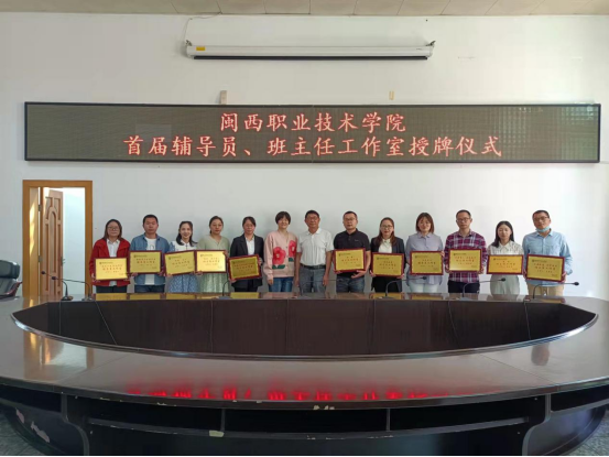 为深入贯彻落实全国高校思想政治工作会议精神和“提质培优”、“双高”建设任务,进一步加强我校学生工作队伍建设,紧密结合大学生成长成才需求,推进辅导员、班主任工作的专业化、品牌化建设,4月11日上午,我校在办公楼二楼第一会议室举行首批辅导员、班主任工作室授牌仪式。副校长吴新业出席仪式,学生工作处主要负责人、各学院分管学生工作副书记、全体辅导员及相关工作人员参加。