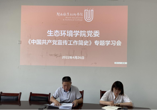 4月26日,生态环境学院党委召开《中国共产党宣传工作简史》专题学习会。学院党委委员、支部书记参加会议。
