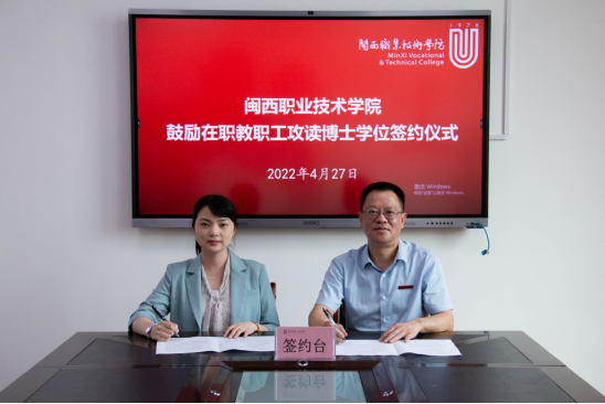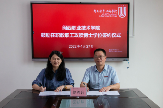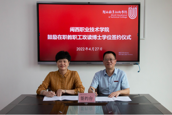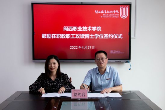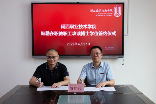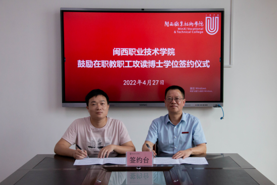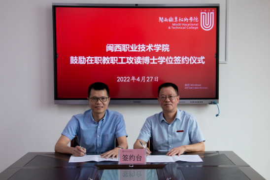 在签约仪式上,梁俊平校长向获得录取通知书的9位老师表示祝贺,并提出殷切期望。他希望攻读博士学位的老师围绕学校的办学定位,聚集高职教育与技术技能人才培养,明确攻读方向,与学校发展同频共振,为学校发展作出更高更贴切的贡献!勉励他们坚定信心,处理好学习与工作、生活的关系,争取早日获得博士学位,为学校高质量发展提供强劲的人才支撑。