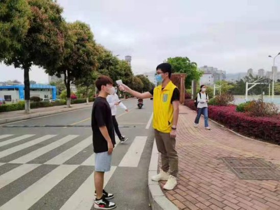 4月起,城乡建筑学院响应校团委号召,开展“文明督导”志愿活动,广大团员青年纷纷请缨,争当疫情防控的守门员、劝导员、宣传员,一批身穿黄色马甲、手持体温枪的志愿者每天出现在学校相关区域,开展防疫宣传、做好体温监测、督促佩戴口罩等,在团结渠上增添一道亮丽的风景线。