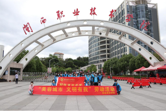 为弘扬中华民族优秀的传统美德,培养学生创新精神和实践能力、提升学生综合素质,增强学习的社会责任感,树立正确的劳动价值观,养成良好的劳动习惯和品质,5月1日下午,我校财经商贸学院集中组织学生在校外周边开展弘扬劳动精神,“美容城市 文明有我”志愿服务活动。