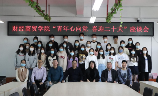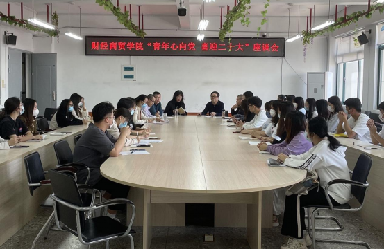 5月3日下午,财经商贸学院在实训楼811会议室举行庆祝五四青年节“青年心向党,喜迎党的二十大”座谈会。该院班子成员,院团负责人,青年教师代表,院团委主要学生干部及大一、大二各班级团支部书记参加了座谈会。