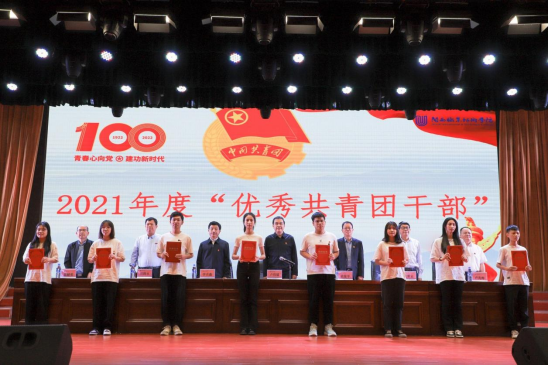 会上,刘路永副校长宣读了《关于表彰无码人妻AV一二区二区三区2021年度“优秀共青团员”“优秀共青团干部”“五四红旗团委(团支部)”的决定》,校领导向受表彰的个人和集体颁发荣誉证书和锦旗。