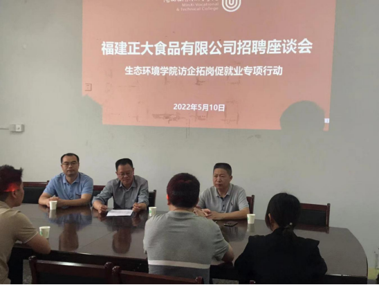 座谈前,来访企业面对在校生召开了线下宣讲会,为生态环境学院2022届毕业生提供近90个岗位。