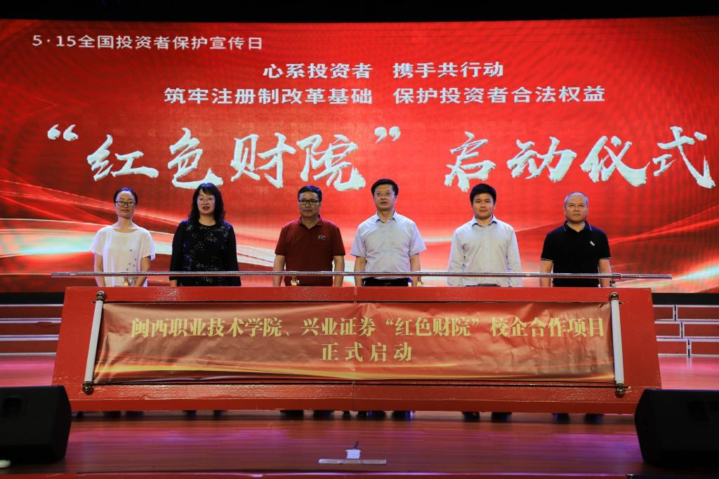 “红色财院”是财经商贸学院为深入贯彻落实习近平总书记关于“把红色资源利用好、把红色传统发扬好、把红色基因传承好”的指示精神和学校“一院一品”党建工作的要求,与兴业证券龙岩分公司和兴业证券古田投资者教育基地联手打造的富有红色文化特色的特色品牌。“红色财院”落地我校财经商贸学院,以理论加实践相结合的模式,引导大学生了解红色历史和红色金融,对我校优化人才培养模式,提升学生综合素养,弘扬红色革命文化,提高红色文化实践应用能力具有重要的意义,为财经商贸学院开展产教融合踏出坚实的一步。