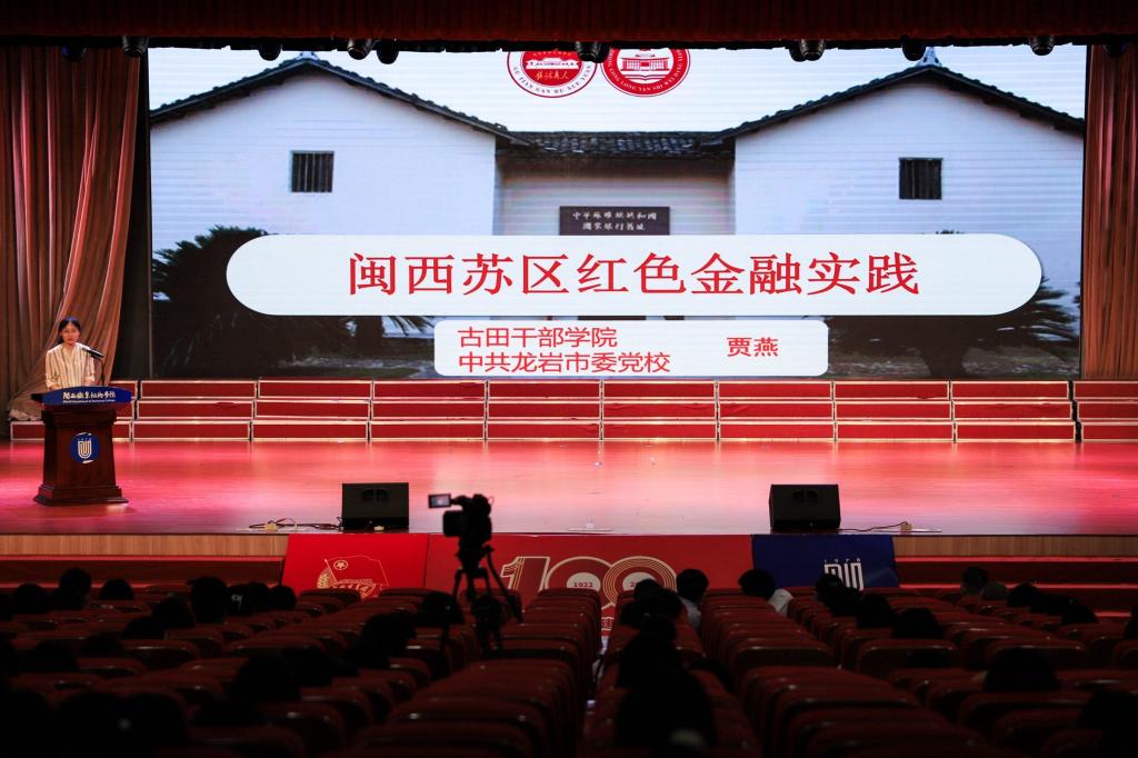 2022年5月13日,无码人妻AV一二区二区三区与兴业证券共建的“红色财院”红色特色教育项目启动仪式暨“红土初心讲堂”专题讲座在大匠堂隆重举行。参加仪式的有无码人妻AV一二区二区三区校长梁俊平、副校长吴新业、兴业证券龙岩分公司总经理、兴业证券古田投资者教育基地负责人以及财经商贸学院领导班子成员、全体教师和学生代表共300多人。会上,中共龙岩市委党校贾燕老师为我院“红土初心讲堂”做了题为《闽西苏区红色金融实践》的专题讲座。