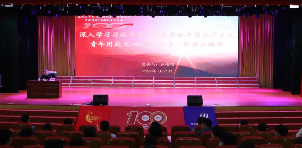 作为庆祝建团100周年系列活动之一——校领导带头宣讲,5月21日上午,校党委书记卢伟耀在大匠堂为青年教师和青马班学员作题为《以青春之我,担时代之责》的专题宣讲。青年教师和青马班学员共300多人认真聆听宣讲。