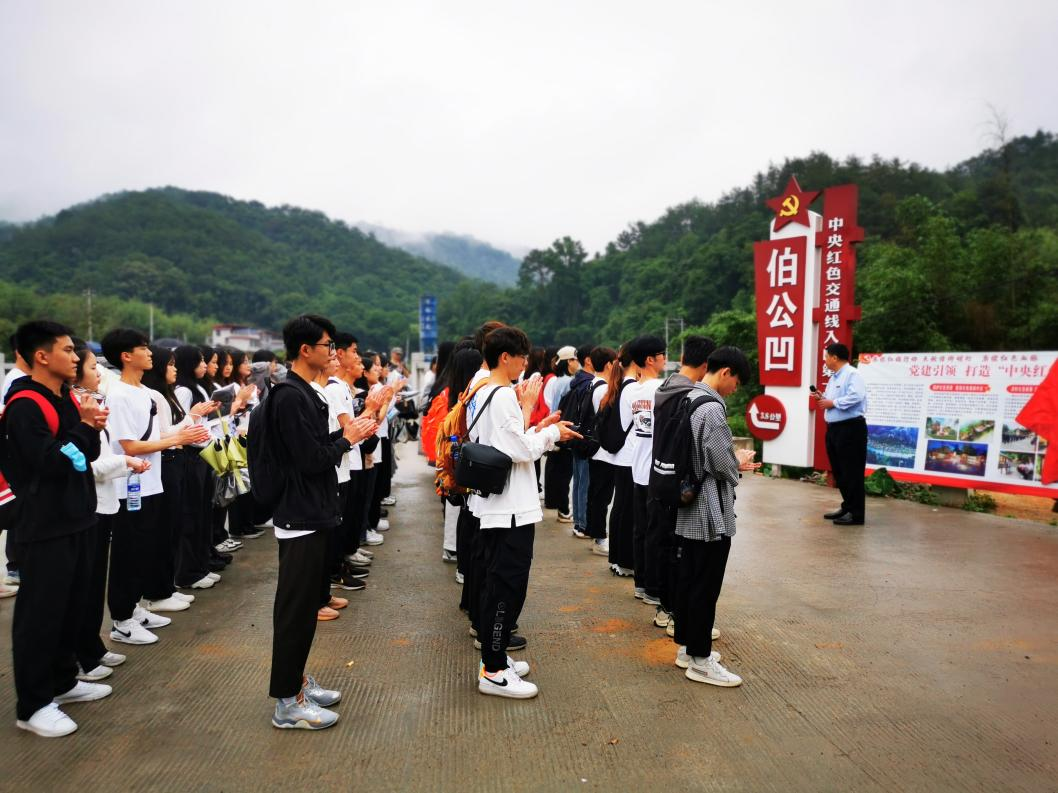 永定伯公凹曾是中央红色交通线粤闽路段交通站,也是中央红色交通线入闽第一站。全体学员到达伯公凹成功大桥后,举行了重走红军路出征仪式,刘路永副校长鼓励大家发扬长征精神,砥砺前行。随后,全体成员分成五组,带上干粮,穿上雨衣,冒着小雨,步行约5公里到达了伯公凹。在伯公凹,全体学员集中聆听了交通员后人讲述的“一门七烈士、血洒交通线”“一盏明灯薪火相传”“三块银元”等可歌可泣的革命英烈的事迹。并模拟体验了当年交通员护送物资,躲避国民党搜查,艰难到达伯公庙的过程。