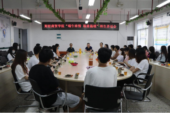 为弘扬中华民族传统文化,丰富大学生的精神文化生活,增强大学生的文化自信、文化认同感,6月3日,财经商贸学院在实训楼811开展“端午浓情 粽意温暖”师生茶话会,该院教师和部分家庭经济困难学生参加。