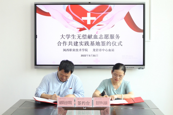 据悉,我校是全省首家在校内建设爱心驿站的高校。刘路永副院长与龙岩市中心血站黄丽平站长分别代表双方单位签定合作协议书。此次与龙岩市中心血站无偿献血志愿服务合作共建实践基地签约仪式地签约仪式的顺利举行,将为大学生搭建起一个良好的社会实践平台,依托基地平台更好的宣传推广无偿献血知识,提高全体师生对无偿献血的知晓率,促进更多的社会爱心人士加入到无偿献血的队伍中来!