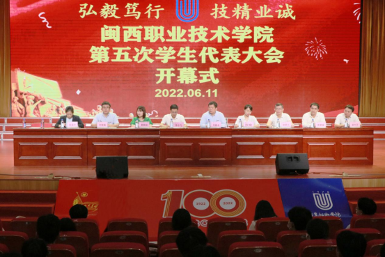 6月11日上午,我校第五次学生代表大会(以下简称学代会)在大匠堂成功召开。共青团龙岩市委书记李小飞、学少部部长曾秋招,校党委委员副校长刘路永,校团委、财经商贸学院、城乡建筑学院、教育与艺术院、医学护理学院、文化与旅游学院党委相关负责人等,及正式代表、工作人员近180人参加。