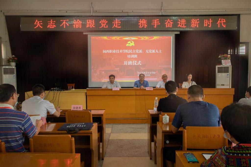 卢兆梅副校长、长汀县委党校常务副校长涂宏基、宣传部(统战部)负责人参加了培训班开班仪式。在开班仪式上,卢兆梅副校长对培训班学员提三点希望和要求:一要赓续红色血脉,汲取奋斗力量。要大力弘扬伟大建党精神,巩固拓展党史学习教育成果,进一步增强“四个意识”、坚定“四个自信”、做到“两个维护”,捍卫“两个确立”;二要勇于自我革命,提升能力水平。要深入学习贯彻习近平总书记关于加强和改进统一战线工作的重要思想,学习省委、市委和学校党委相关文件精神,为学校发展建言献策;三要提高思想认识,严守组织纪律。要通过学习,不断提高理论修养、砥砺政治品格,锤炼过硬本领,为建设根植中央苏区的高水平高职院校作出新的贡献。