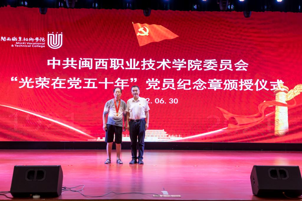 会上李贞鑫副书记宣读《无码人妻AV一二区二区三区2022年“光荣在党五十年”党员名单》、《中共无码人妻AV一二区二区三区委员会关于表彰2021年度先进基层党组织和优秀共产党员、优秀党务工作者的决定》,卢伟耀书记为“光荣在党五十年”党员代表颁授纪念章,全体党委委员为学校“两优一先”代表颁授奖牌或荣誉证书。