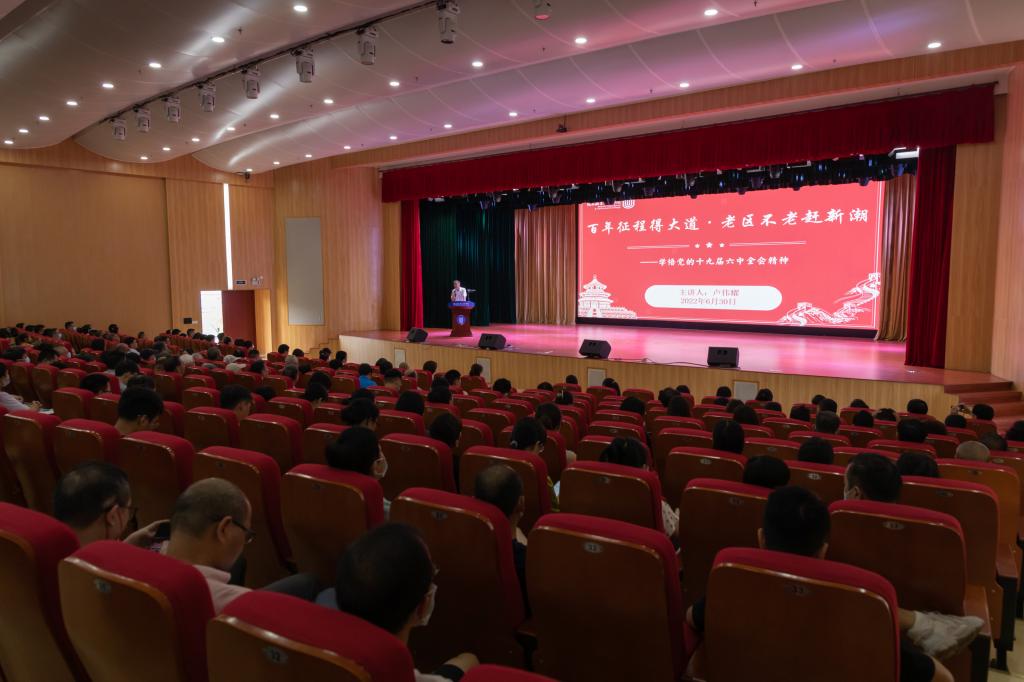 会上还举行了中共无码人妻AV一二区二区三区委员会“红土初心讲堂”揭牌仪式,并由卢伟耀书记开讲,作了题为《百年总结正明史,老区不老谱华章---学悟十九届六中全会精神》的报告。