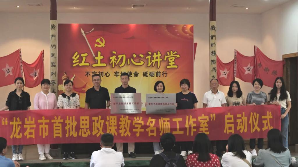 2022年6月28日,我校在漳平龙车革命纪念馆举行了“龙岩市首批思政课教学名师工作室”授牌仪式暨思政课教师社会实践研修活动,学校粱俊平校长、李贞鑫副书记莅临现场并为“曾平思政课名师工作室”和“黄冬兰思政课名师工作室”授牌,全体思政课教师参加。