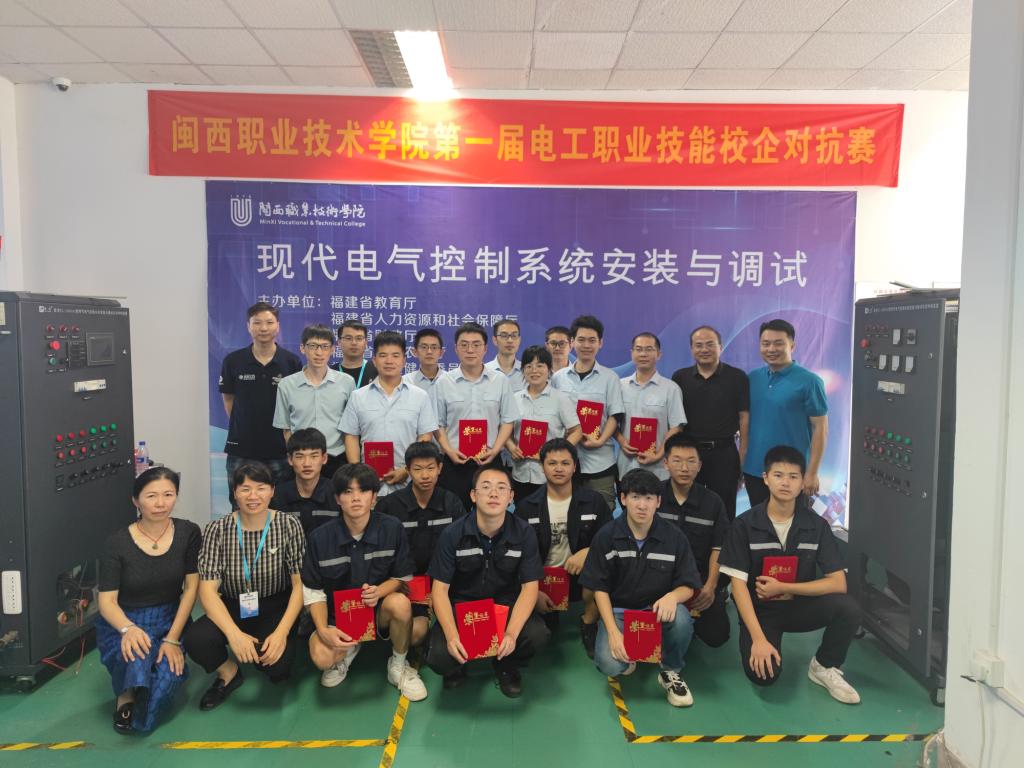 本次比赛由信息与制造学院和龙烟公司共同精心筹备,企业和学校各派出4对选手参加比赛。通过赛前的培训和现场比赛,提高了参赛人员PLC控制技术、电气控制技术、电工技术、电机与电器、供用电技术、变频器应用技术等电工核心技能,增强质量意识、安全意识、节能环保意识和规范操作的职业素养。