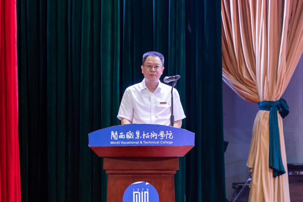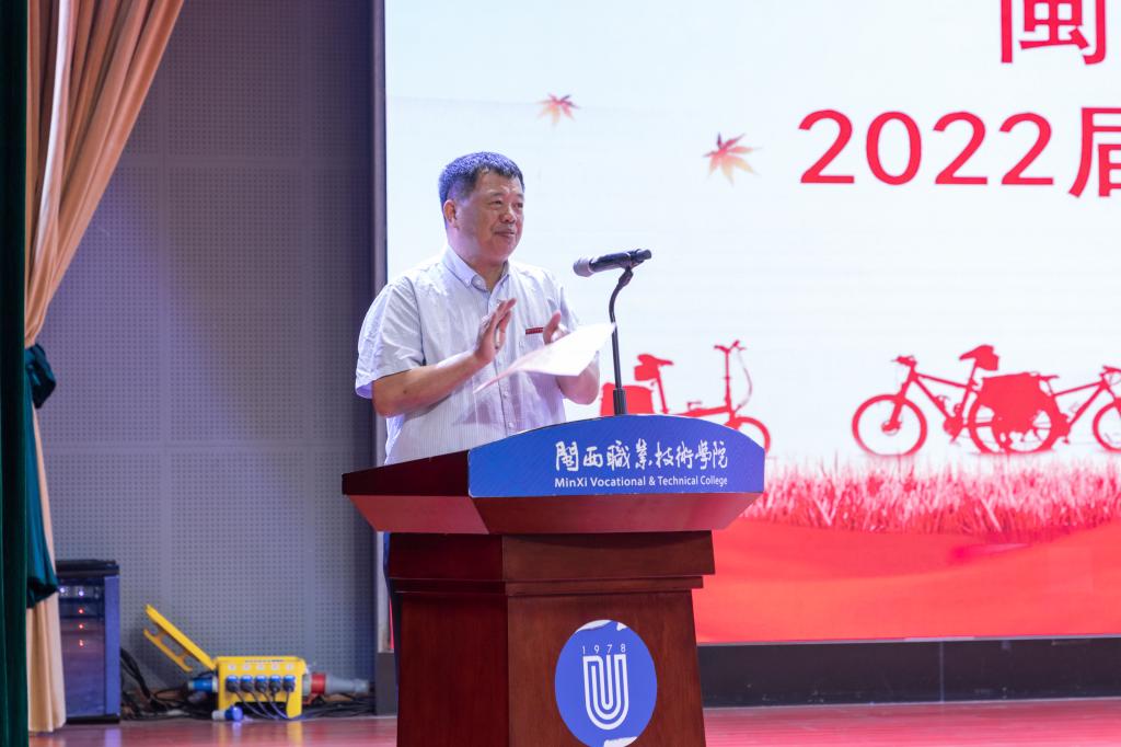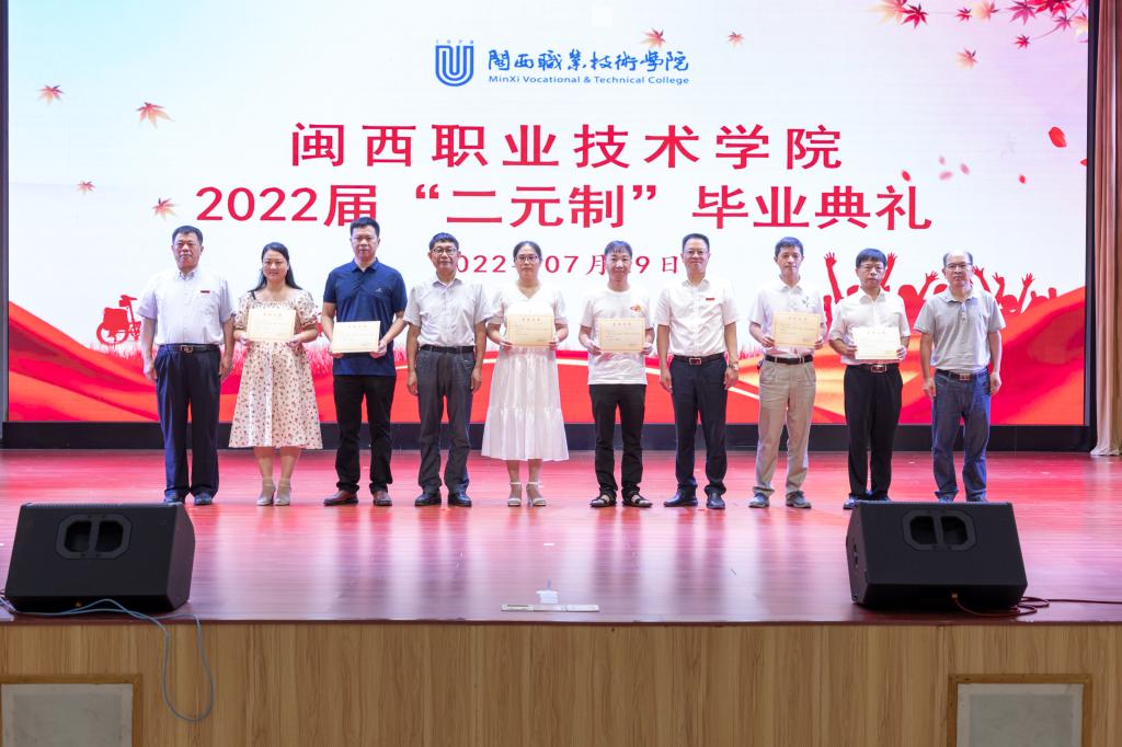 2022年7月29日,我校在大匠堂举行2022届“二元制”学生毕业典礼暨优秀毕业生表彰大会。学校梁俊平校长、吴新业副校长、刘路永副校长、纪委温献荣书记,福建龙麟集团有限公司、龙岩市医药行业协会代表及学校相关部门负责人、授课教师代表和全体“二元制”毕业生参加典礼。典礼由学校党委委员、副校长刘路永主持。