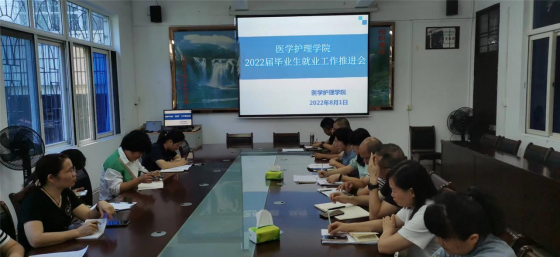 为应对受2022年疫情影响全国护士资格证考试延考下,医护学院毕业生就业慢的问题,8月1日上午,医学护理学院在天马校区一楼会议室召开2022届毕业生就业工作第三次推进会,学院党政领导、专业主任及教研室主任等就业工作领导小组成员参加会议,会议由党委负责人邱伟彬主持。