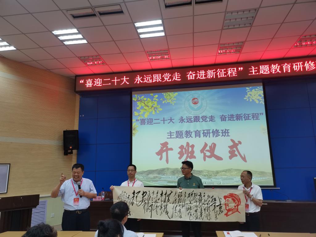 在开班仪式上,刘路永副院长向陕西铁路工程职业技术学院赠送由他敬书的毛主席词《长征》书法作品。