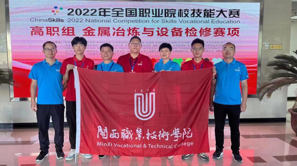 2022年全国职业院校技能大赛高职组“金属冶炼与设备检修”赛项决赛于8月19日下午在天津工业职业学院顺利闭幕。来自全国14个省市、自治区,38所高职院校,共114名参赛选手参加了比赛。我校李贞鑫副书记带队,对外交流合作处梁玉兰教授和生态环境学院钟彬扬老师指导的钟铭玮、李浪、林荣彬3名同学以省赛第一的成绩代表福建省参加了比赛。